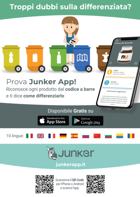 L'App è integralmente tradotta in ben 10 lingue, tra cui russo, cinese, rumeno e ucraino, per favore non solo i residenti ma anche i molti turisti e cittadini stranieri che vivono e lavorano in Italia. Inoltre la App è totalmente accessibile anche per ipo e non vedenti, sia nella versione iOs che Android.Ecco come funziona: scansionando il codice a barre del prodotto o dell'imballaggio, Junker riconosce il rifiuto grazie ad un database interno di oltre 1 milione e mezzo di prodotti e ne indica la scomposizione nelle materie prime e i bidoni a cui sono destinate le varie parti.