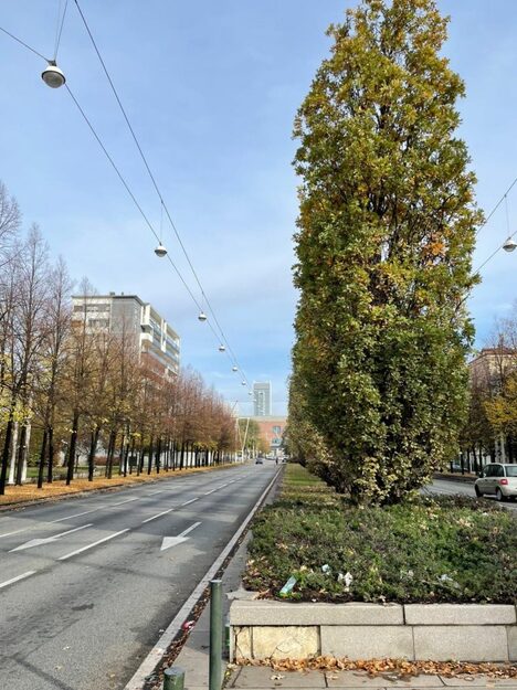 Nelle altre tratte i nuovi alberi saranno della medesima specie; la situazione infatti è meno grave e il numero di querce piramidali vive è tale da non consigliare, per il momento, un cambio di specie.