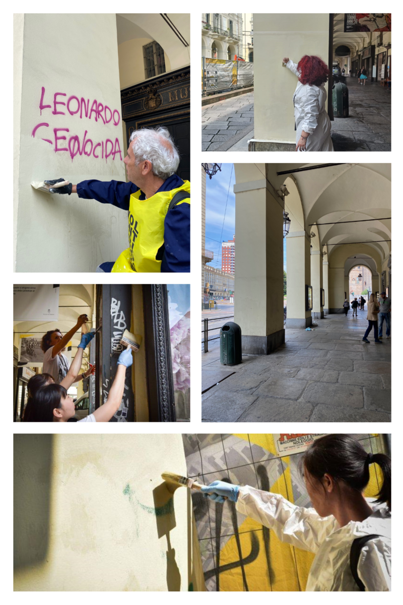 Commercianti, residenti di via Po, volontari e Consiglieri della Circoscrizione 1, con la consulenza tecnica della Fondazione Contrada Onlus, lunedì 17 giugno hanno ripulito i pilastri più sporchi della via.
