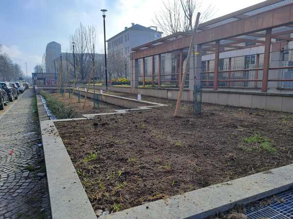 A delimitazione dell'intera area è stata posta una nuova di siepe di Agrifoglio del Giappone e in corrispondenza di corso Turati e corso Re Umberto due macchie di Forsizia che daranno, a piena fioritura, un bel colpo di colore giallo alla via.