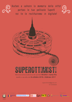 Superottimisti è un progetto di recupero della memoria, attraverso la raccolta di filmati familiari in formato ridotto 8mm, super8, 9,5mm, 16mm. Dal 24 ottobre 2016 a febbraio 2017 Superottomisti è attivo nei quartieri Mirafiori Nord, Mirafiori Sud e Santa Rita con una serie di eventi diffusi e una raccolta di pellicole.