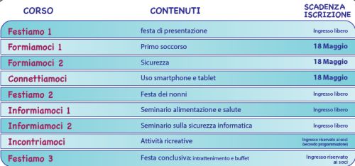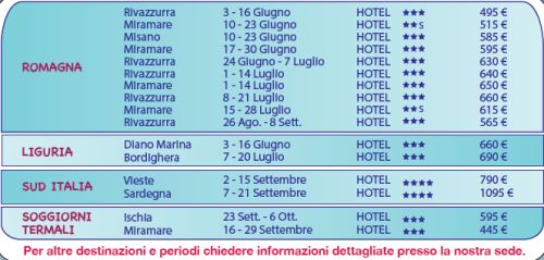 Con il Patrocinio della Circoscrizione 2, Soggiorni per la terza età riservati ai soci con destinazione Romagna - Liguria - Sicilia - Sardegna - Puglia - destinazioni estere e Corsi gratuiti aperti a tutti i soci.