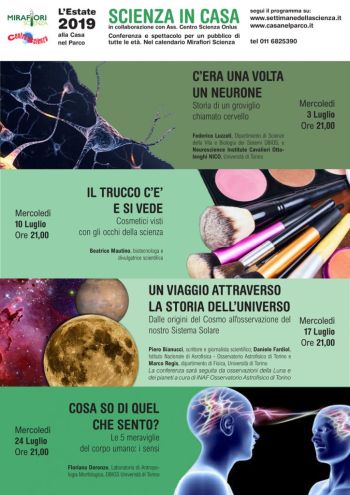 ore 21.00 - 22.00 - UN VIAGGIO ATTRAVERSO LA STORIA DELL'UNIVERSO. Dalle origini del cosmo all'osservazione del nostro sistema solare. Piero Bianucci, scrittore e giornalista scientifico, Daniele Gardiol, Istituto Nazionale di Astrofisica - Osservatorio Astrofisico di Torino, Marco Regis, dipartimento di Fisica, Università di Torino.