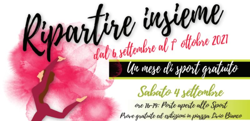 Un mese di sport gratuito WWW.SPORTIDEA.IT dal 6 settembre al 1° ottobre 2021 Come partecipare? Rivolgersi alle associazioni referenti o presentarsi direttamente nei luoghi e ore di svolgimento delle lezioni. Per partecipare sono richiesti il certificato medico per la pratica sportiva non agonistica e il Geen Pass per le attivitą in palestra.A.S.D. Ballo Anch'io: ref. Daniela Bracco 348.8756379 bracco.daniela@fastwebnet.it (danza in carrozzina/inclusiva)