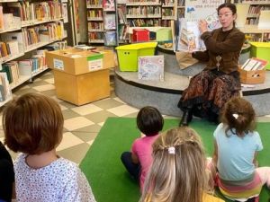 Letture ad alta voce per le bambine e i bambini e le loro famiglie con le volontarie del servizio civile.