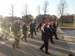 Sfilata della banda in abbigliamento natalizio nelle vie tra Via Tripoli e C.so Sebastopoli