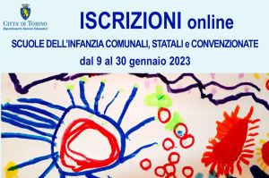 La domanda di iscrizione alla scuola dell'infanzia dovrà essere presentata online sul portale TorinoFacile, con credenziali SPID, dalle ore 8.00 del 9 gennaio alle ore 20.00 del 30 gennaio 2023.
