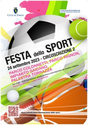 La Festa dello Sport cittadina si svolgerā in data 24 settembre presso il Parco Colonnetti, il Parco Rignon, l'impianto sportivo Gaidano (Via Modigliani 25) e la Palestra Torrazza (Via Torrazza 19).