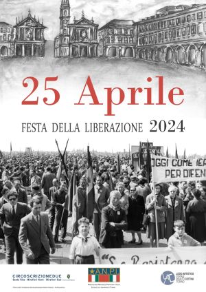 a cura dell'ANPI, sezione Leo Lanfranco Torino, in collaborazione con la Circoscrizione 2. Orazione ufficiale. Prende parte la Filarmonica Mirafiori Sud. Esposizione dei manifesti sul 25 aprile,realizzati dagli studenti e dalle studentesse della classe III^ B liceo artistico Cottini.