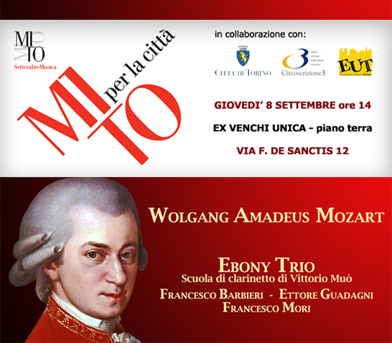 giovedì 8 settembre ore 15.30 Ospedale Martini (Cappella) - Via Tofane 71 - Ebony Trio (musiche di W. A. Mozart)