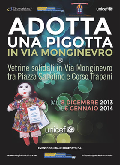Per l'undicesimo anno consecutivo, l'Associazione Monginevro Cultura, sempre sensibile alle iniziative di solidarietà, che occupano una posizione di rilievo tra gli obiettivi sociali, propone e promuove l'Adozione delle Pigotte dell'Unicef, nei giorni precedenti il Natale e fino all'Epifania, nelle vetrine delle botteghe di Via Monginevro (Borgo San Paolo - Torino). Le adozioni possono essere effettuate direttamente nei negozi del tratto di Via Monginevro compreso tra Piazza Sabotino e Corso Trapani: i negozi aderenti sono identificabili dall'inconfondibile Locandina ufficiale dell'Unicef, che riproduce l'immagine di una Pigotta e la scritta "Adotta una Pigotta in Via Monginevro".
