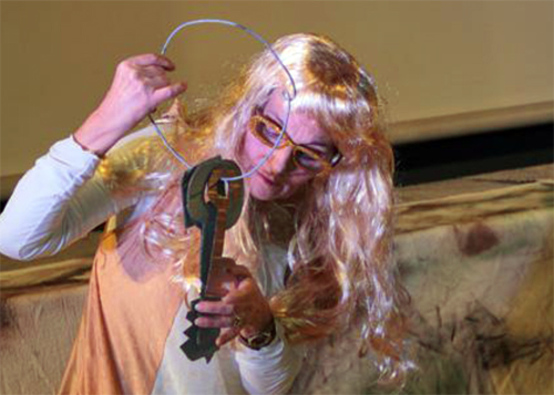 In scena con le 9 allieve di Teatro Ricerca Donna, un enorme e roboante fantoccio Barbablù e una sognante finestra di teatro di figura.