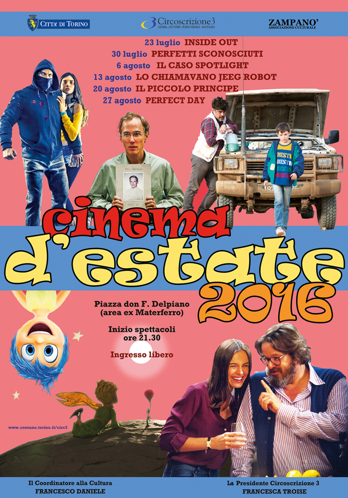 Le proiezioni di CINEMA D'ESTATE 2016 vengono effettuate presso l'arena spettacoli di PIAZZA DON F. DELPIANO, all'interno dell'area pedonale dell'ex Materferro, tra i corsi Rosselli, Lione e Mediterraneo e tra le piazze Marmolada e Largo Orbassano, alle spalle del Carrefour Market