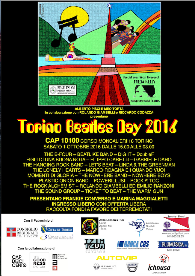 L'attesissima edizione 2016 a cura di Beatlesiani d'Italia Associati, ha ottenuto il Patrocinio del Consiglio Regionale del Piemonte e della Cittā di Torino.