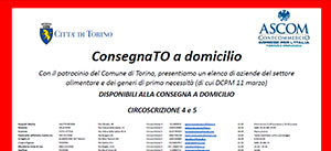 Con il patrocinio del Comune di Torino, l'ASCOM Torino e Provincia presenta un elenco di aziende del settore alimentare e dei generi di prima necessitā disponibili alla consegna a domicilio.