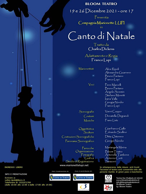 In occasione delle prossime Festivitą Natalizie, Bloom Teatro il 19 e 26 dicembre 2021 alle ore 17 in Via Challant 13, presenta Compagnia Marionette LUPI in "CANTO DI NATALE" tratto da Charles Dickens.