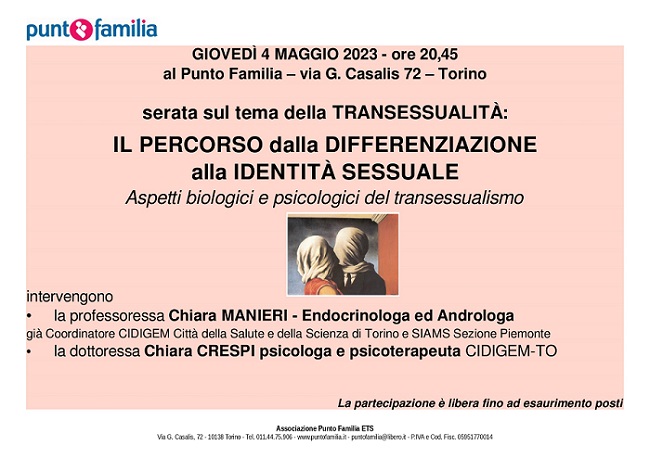 serata sul tema: IL PERCORSO dalla DIFFERENZIAZIONE alla IDENTITA' SESSUALE (Aspetti biologici e psicologici )