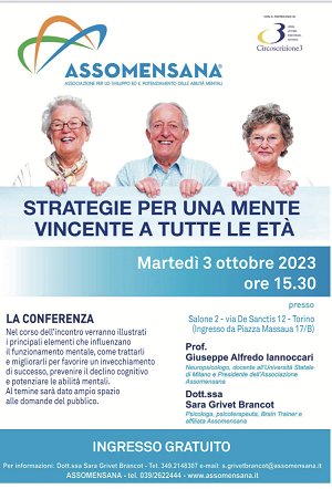 L'Associazione Assomensana realizza il progetto "Conferenza Strategie per una mente vincente a tutta le età". L'obiettivo della conferenza è di illustrare le strategie e i comportamenti più efficaci per mantenere una mente allenata e agile a tutte le età.