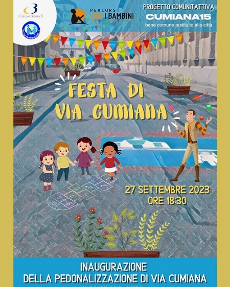 Mercoledì 27 settembre ore 18:30 verrà inaugurata la pedonalizzazione di Via Cumiana