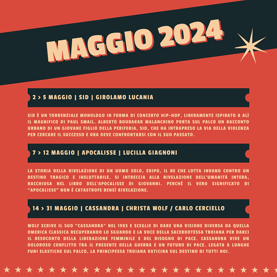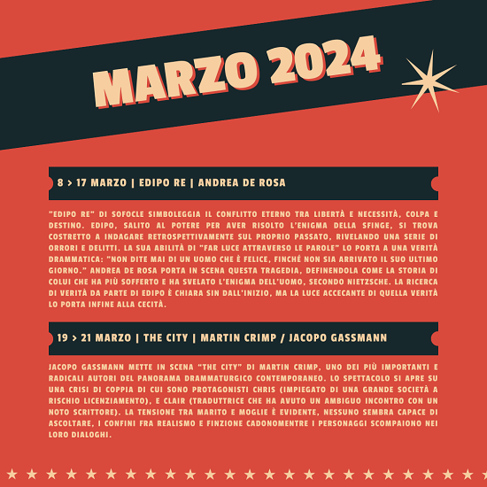 - 8 > 17 marzo 2024: Edipo re- 19 > 21 marzo 2024: The city
