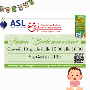 L'Associazione Cuore e Rianimazione "Lorenzo Greco" Onlus vi invita a partecipare all'incontro dedicato ai Bimbi Sani e Sicuri. Poiché l'evento è molto richiesto, è necessario iscriversi preventivamente. Per favorire la partecipazione del maggior numero di famiglie, vi chiediamo gentilmente di limitare la presenza a un solo componente per famiglia. Tuttavia, se non potete lasciare i vostri bambini a casa, non preoccupatevi, sono comunque i benvenuti!