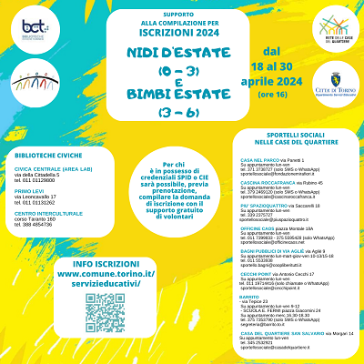 Per partecipare, č necessario presentare la domanda d'iscrizione esclusivamente online su TorinoFacile, utilizzando le credenziali SPID o CIE, dalle ore 8.00 del 18 aprile alle ore 16.00 del 30 aprile 2024.