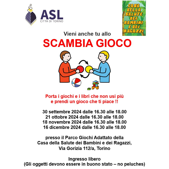 Potrete portare 𝐠𝐢𝐨𝐜𝐡𝐢, 𝐥𝐢𝐛𝐫𝐢 e materiale per bambini 𝟎-𝟏𝟒 𝐚𝐧𝐧𝐢 che non utilizzate pił (integri e in 𝐛𝐮𝐨𝐧𝐨 𝐬𝐭𝐚𝐭𝐨 𝐝𝐢 𝐜𝐨𝐧𝐬𝐞𝐫𝐯𝐚𝐳𝐢𝐨𝐧𝐞) e scambiarli con altri.