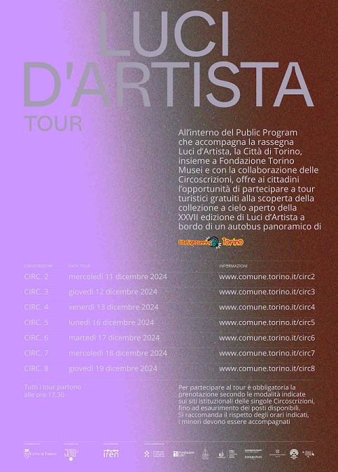 🌟✨ All'interno del Public Program che accompagna la rassegna Luci d'Artista, la Cittā di Torino, insieme a Fondazione Torino Musei e con la collaborazione delle Circoscrizioni, offre ai cittadini l'opportunitā di partecipare a tour turistici gratuiti alla scoperta della collezione a cielo aperto della XXVII edizione di Luci d'Artista a bordo di un autobus panoramico di CitySightSeeing Torino.