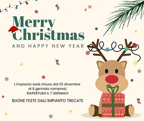 Si comunica che la piscina Trecate sarą chiusa del 23 dicembre al 06 gennaio per le festivitą; vi aspettiamo per la riapertura il 7 gennaio!Vi auguriamo un felice Natale e un buon inizio d'anno