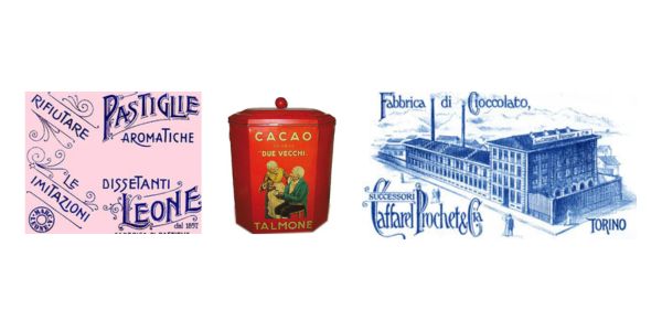 A sua volta Michele Talmone aprì nel 1850 il suo stabilimento per la lavorazione del cacao in via Balbis 19. Allora il cioccolato era venduto in scatole di latta ermeticamente chiuse presso i più rinomati droghieri, confettieri e anche farmacisti. Talmone fu uno dei primi industriali a credere nella pubblicità e fu proprio lui a commissionare il manifesto pubblicitario dei "due vecchietti", creato nel 1890 dal tedesco Ochsner, che apparve sui muri di mezzo mondo, entrando così a far parte della vita quotidiana di almeno tre generazioni.