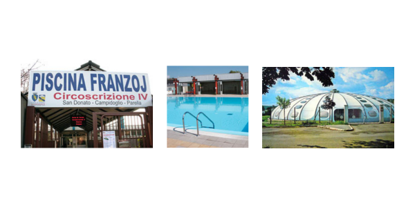 La Franzoj, con vasca a 6 corsie di 25 m, fa parte delle cosiddette "Tre Gemelle" di Torino, tre impianti identici costruiti nei primi anni '80 del '900. Il progetto fu un'elaborazione originale della ditta Ronco, che prese spunto dal famoso programma francese delle "mille piscine", dalle forme sia avveniristiche a disco volante che rettangolari a tetto scorrevole.