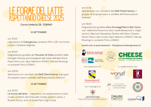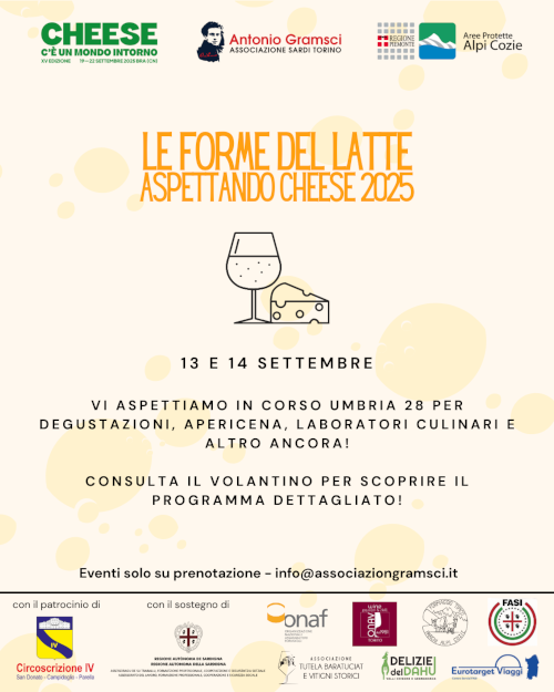 📅 🧀Aspettando Cheese presso l'𝑨𝒔𝒔𝒐𝒄𝒊𝒂𝒛𝒊𝒐𝒏𝒆 𝒅𝒆𝒊 𝑺𝒂𝒓𝒅𝒊 𝒊𝒏 𝑻𝒐𝒓𝒊𝒏𝒐 "𝑨𝒏𝒕𝒐𝒏𝒊𝒐 𝑮𝒓𝒂𝒎𝒔𝒄𝒊" propone un percorso alla scoperta della Sardegna casearia e non solo.