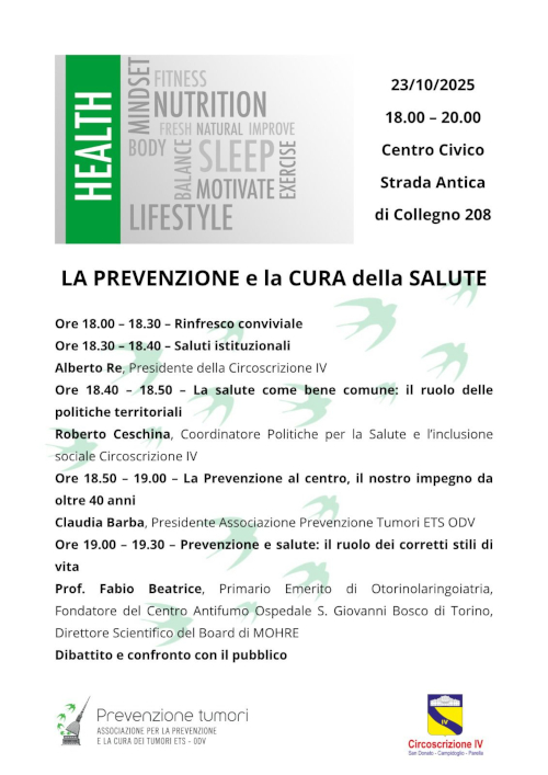 L'evento č promosso da Associazione Prevenzione Tumori ETS ODV in collaborazione con Circoscrizione IV Torino.
