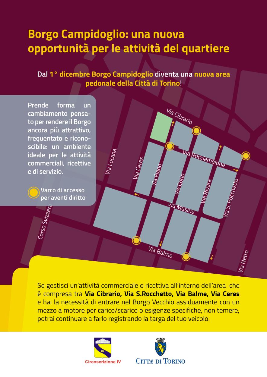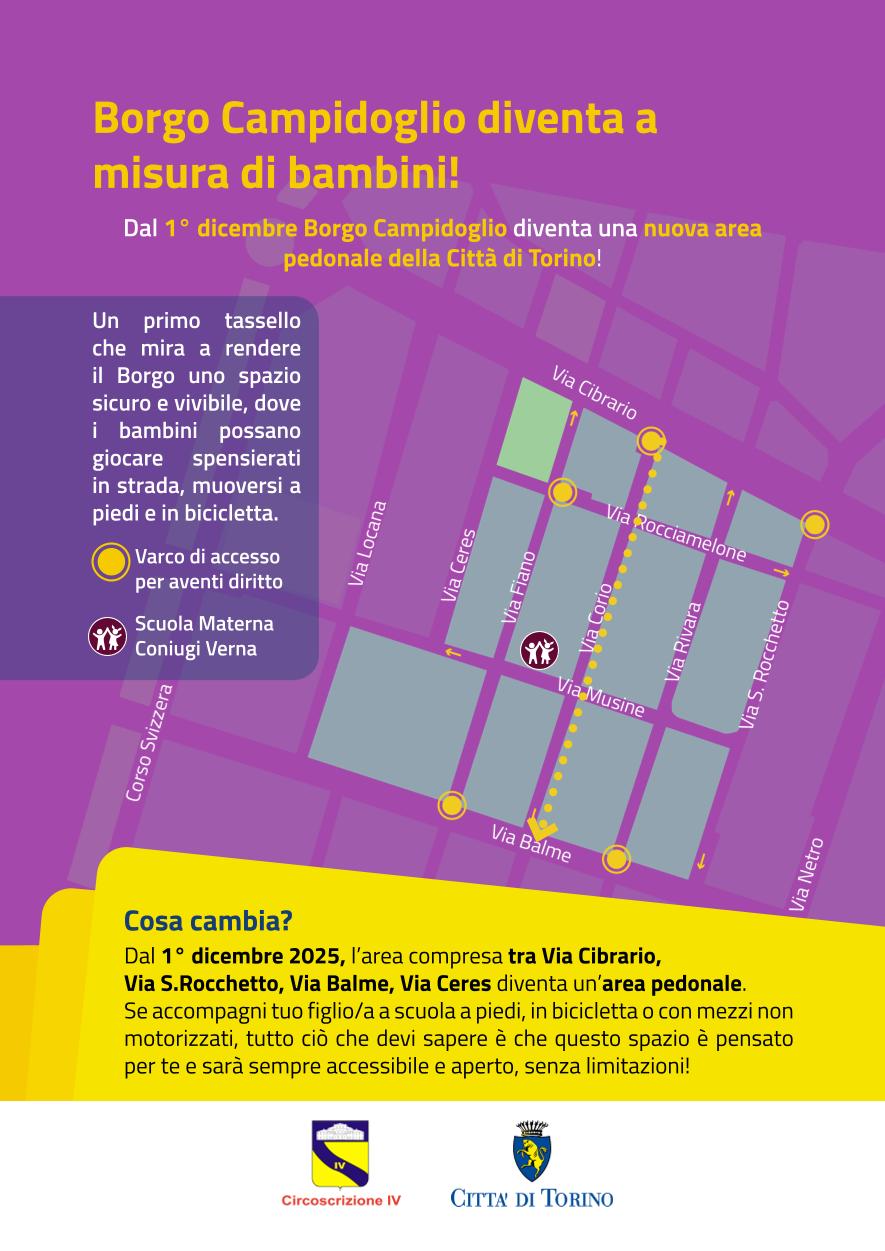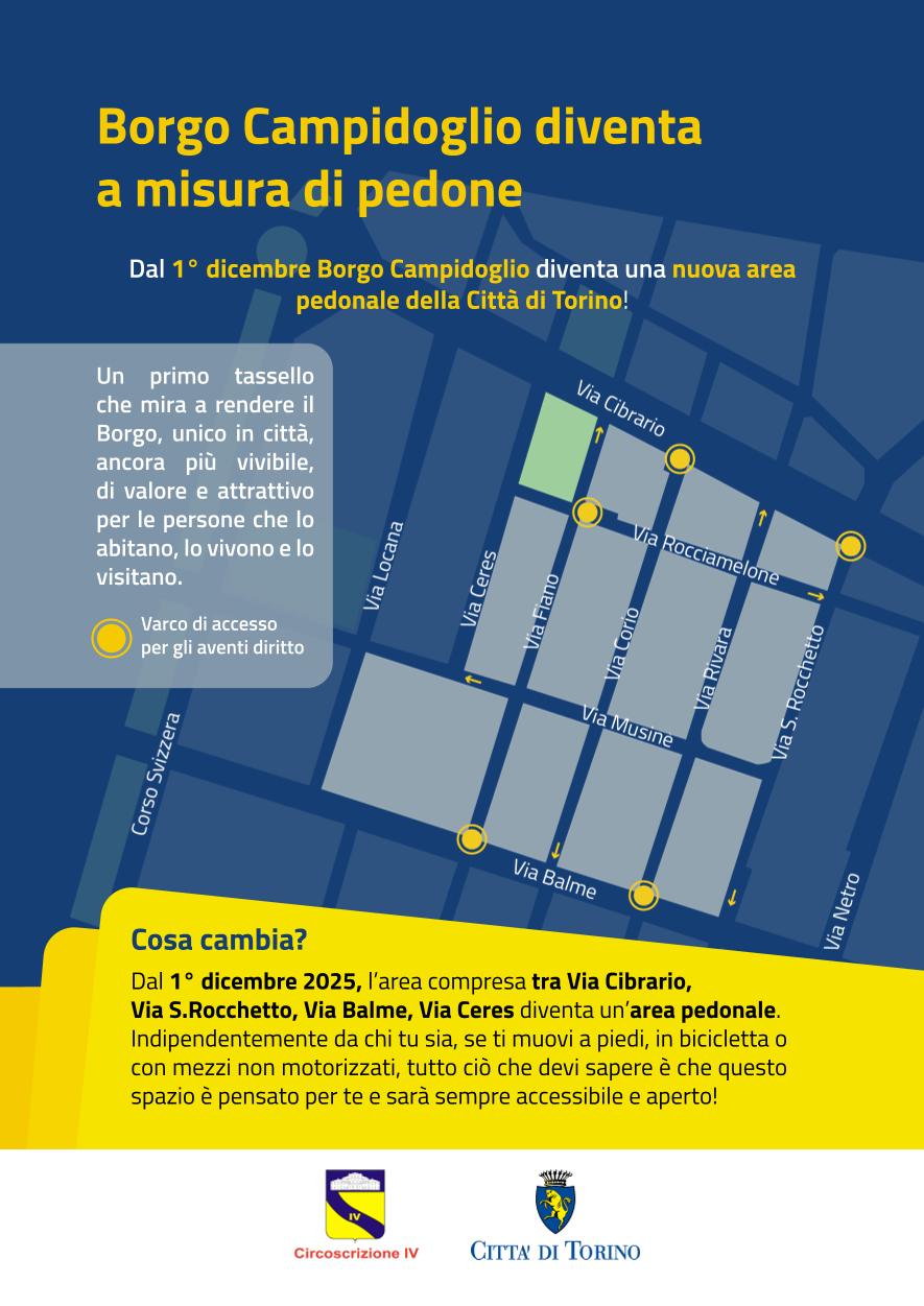 A seguito di un lungo percorso di ascolto e confronto tra la Città di Torino, la Circoscrizione IV e la comunità che anima quotidianamente il quartiere, l'area diventerà ufficialmente una nuova zona pedonale, pensata per valorizzare la storia, la cultura e l'identità di questo luogo unico. La zona pedonale interesserà l'area compresa tra le vie Cibrario, San Rocchetto, Balme e Ceres e sarà sempre accessibile a chi si muove a piedi, in bicicletta o con mezzi non motorizzati.
