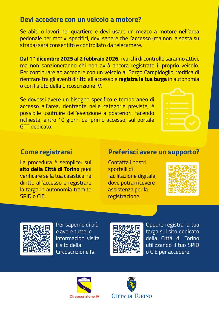 Ulteriori informazioni, una sezione di FAQ e istruzioni operative sono disponibili sui siti della Città di Torino e della Circoscrizione IV.