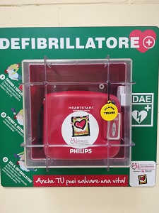 Il defibrillatore è posizionato presso l'atrio di ingresso del Centro Civico ed è stato dato in dotazione dall'Associazione Italiana Cuore e Rianimazione "Lorenzo Greco Onlus".