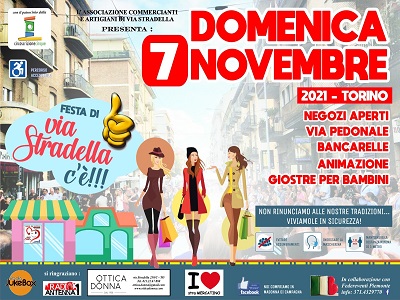 Domenica 7 novembre 2021 "Via Stradella c'č" una giornata di festa per la via che interesserā Via Stradella nel tratto compreso tra C.so Grosseto (escluso) e Via Breglio (esclusa). Oltre ai negozi aperti che esporranno i loro prodotti ed alle attivitā in sede fissa sono previste attrattive per grandi e piccini, gazebo informativi di Associazioni sportive e culturali del territorio.