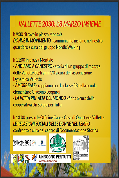 La Cooperativa Sociale Un Sogno Per Tutti propone in occasione della Giornata Internazionale della Donna, martedì 8 marzo 2022 in Piazza Montale una serie di iniziative rivolte alla cittadinanza.