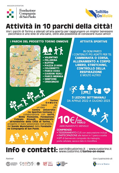 Per informazioni ed eventuale iscrizione č possibile visitare il seguente sito: www.custorino.it/torino-on-move o contattare la seguente email: parchi@custorino.it