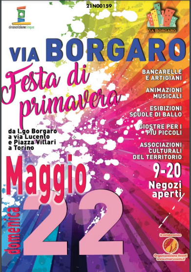 L'Associazine Artigiani e Commercianti di via Borgaro ha organizzato la Festa di via, sarą interessata l'area di via Borgaro nel tratto compreso tra via Lucento e largo Borgaro (escluse) dalle ore 09:00 alle ore 20:00 circa.