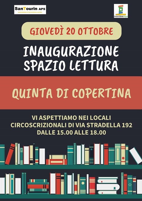 Inaugurazione Spazio Lettura - Quinta di Copertina, vi aspettiamo giovedì 20 ottobre 2022 nei locali circoscrizionali di via Stradella, 192 dalle ore 15:00 alle ore 18:00.