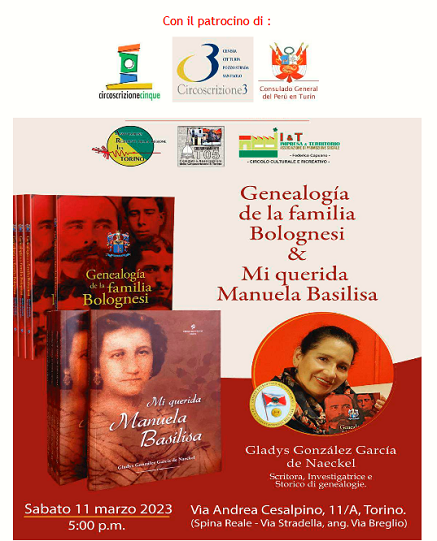 "Genealogia de la familia Bolognesi & Mi querida Manuela Basilia" - l'evento si è svolto sabato 11 marzo 2023 alle ore 17.00 presso Impresa & Territorio APS in via A. Cesalpino, 11/A - Torino.