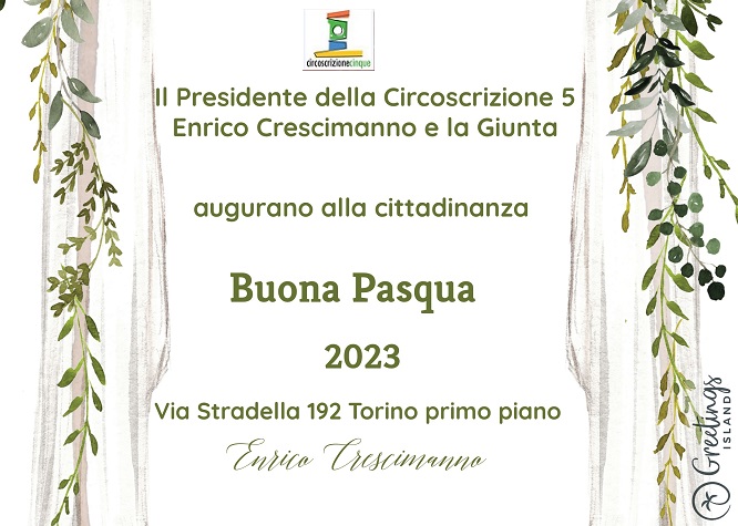 Il Presidente della Circoscrizione 5 Enrico Crescimanno e la Giunta augurano alla cittadinanza Buona Pasqua.