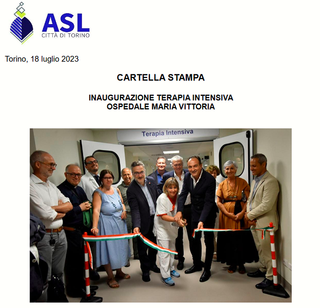 È stata inaugurata martedì 18 luglio 2023, la Terapia Intensiva dell'Ospedale Maria Vittoria dell'ASL Città di Torino.
