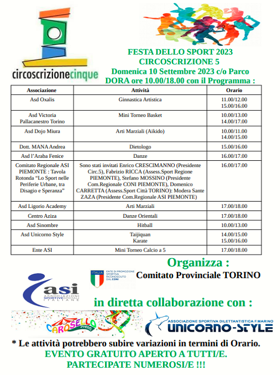 Al Parco Dora domenica 10 settembre 2023 dalle ore 10.00 alle ore 18.00 ci sarà la "Festa dello Sport!"