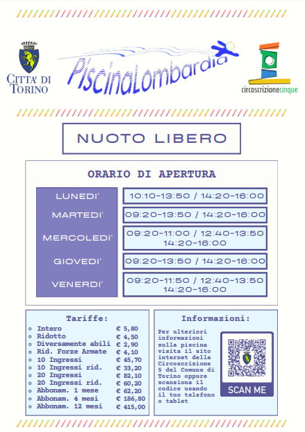 Da lunedì 16 ottobre 2023 sono iniziate le attività sportive e il nuoto libero presso la Piscina Lombardia con sede in corso Lombardia, 95 a Torino.