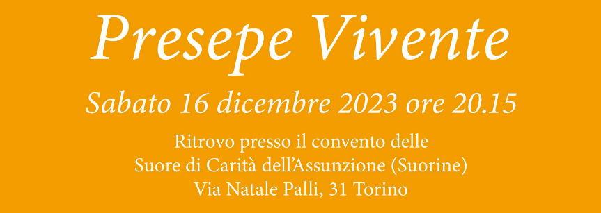 L'Associazione Il Cammino propone anche per il Natale 2023 l'iniziativa "Presepe Vivente" sabato 16 Dicembre 2023 alle ore 20.15 - Ritrovo presso il Convento delle Suore di Caritā dell'Assunzione- via Natale Palli, 31 Torino