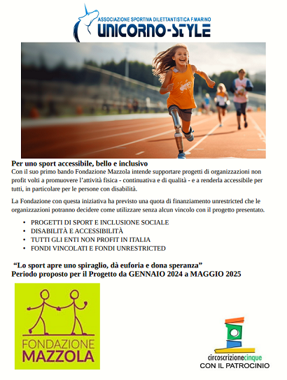 La Fondazione Mazzola intende supportare progetti di organizzazioni non profit volti a promuovere l'attivitą fisica- continuativa e di qualitą - e, a renderla accessibile per tutti in particolare per le persone in condizione di disabilitą.