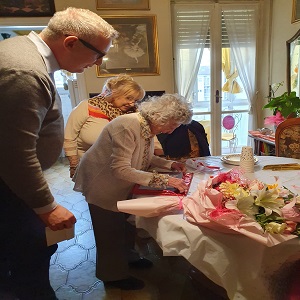 La consegna č avvenuta per mano del Presidente e dei Consiglieri della Circoscrizione 5 alla presenza della figlia Carla, familiari e amici che insieme hanno partecipato a un momento di allegria di emozione e di ricordi degli anni passati, dedicando il centro dell'attenzione e dell'affetto di tutti a una donna: la signora Rosina che ha attraversato un secolo di storia lavorando e dedicandosi alla sua famiglia, un esempio non solo di longevitą, ma anche di vitalitą.