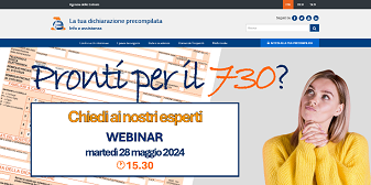 Per rispondere alle tante domande dei cittadini, abbiamo organizzato il seminario on line"Pronti per il 730? Chiedi ai nostri esperti": l'appuntamento è per martedì 28 maggio dalle 15.30 alle 17.30.